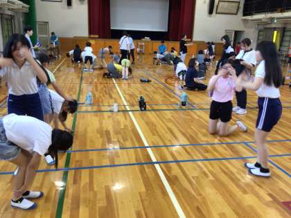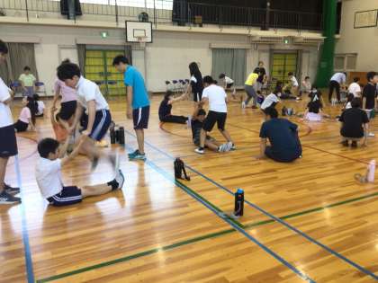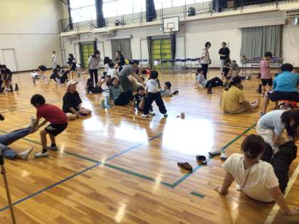 大根役の人が抜かれないように踏ん張る「大根と百姓」、リズムジャンケンなど、全身を使うトレーニングでは、楽しそうに声を上げながら取り組んでいました。休憩をしながら楽しくトレーニングできましたね。お家でも、ぜひやってみてください。講師の先生方、ありがとうございました。