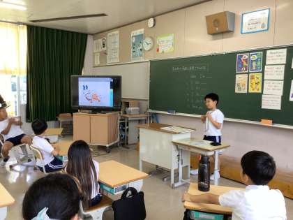 今日は、「好きなものを英語で言えるかな」というめあての学習でした。黄色とか、レモンとか出てくると、「ミートゥー」や「ファンタスティック」など、反応がたくさんあり、楽しい授業でした。外国の方ともたくさん話ができそうですね。
