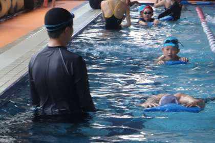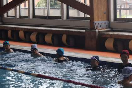 5年生はクロールを、6年生は平泳ぎを中心に練習しました。5年生は、少ない息継ぎでぐんぐん前へ進んでいました。6年生は平泳ぎに苦戦しながらも、諦めずに最後まで泳いでいました。