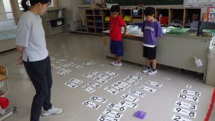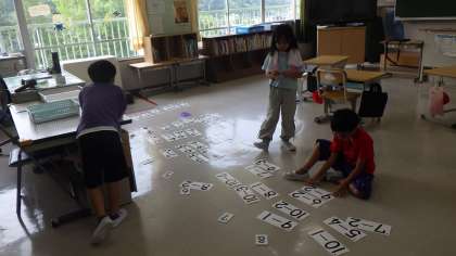 1年生が、「ひきざんマスターになれるかな」とカードを使って、練習していました。まだまだ簡単に答えを導くことができない様子もありましたが、ここからですね。がんばって練習して、マスターになれると良いですね。