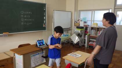 学習用タブレットを活用して、「にじ」を歌っていました。とてもすてきな曲ですよね。いつかみんなで歌う機会があるのかな。