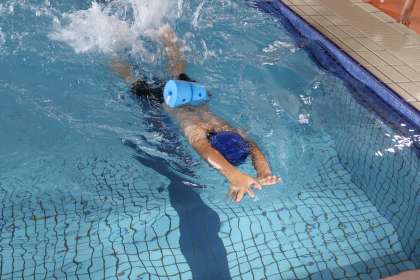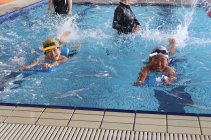 ビート板がなくても、泳げるようになってきました。腕を伸ばし、きれいな姿勢で泳ぐことができていました。最後のテストでは、緊張しながら1人1人練習の成果を発揮しました。