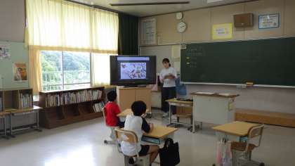 1年生が、道徳科の授業を行っていました。教材を先生が読んでいるときに、さまざまな思いが頭にめぐっているようでした。本当に集中していて素敵な授業でした。3・4年生は、音楽科の授業で、リズムの勉強をしていました。みんな笑顔で楽しそうな時間を過ごしていました。