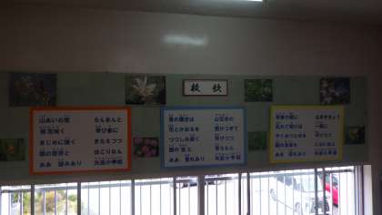 3枚の写真は、校舎の階段の上に掲示してある校歌です。僕らの学び舎の取材にもうすぐひまわりネットワークがやってきます。みんなで校歌を歌う場面があるそうです。しっかり歌えるかな。練習しないといけませんね。