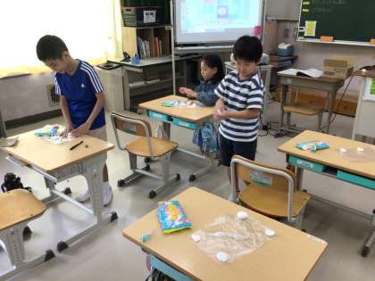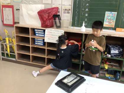 紙粘土を使った活動をしてました。紙粘土の特徴を生かして、教室にあるでこぼこを探し、紙粘土を押し付けてでこぼこを写してました。形ができると「先生、見て」と嬉しそうに見せていました。でこぼこから、どんな作品ができるか楽しみですね。