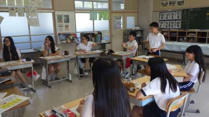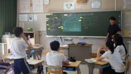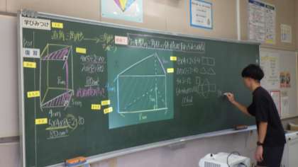 今日の6年生は、ケーキ型の三角柱の体積を求めていました。計算で、使う辺と使わない辺に戸惑っていたり、体積と表面積を混同してしまったりしていました。よくわかったかな。