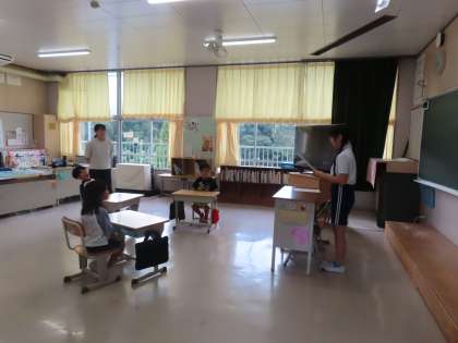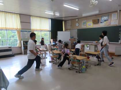 保健委員が、来週実施する「しゃきっと姿勢週間」のお知らせに行きました。早速、お知らせを聞いている姿勢から気を付けている子もいて、すばらしかったです!姿勢週間では、保健委員がまとめたしゃきっとしせいトレーニングを実施したり、作成したチェックカードを用いたりして、よい姿勢を目指します。「グー・ペタ・ピン」を合言葉に、学校や家で姿勢を意識していけるとよいですね。
