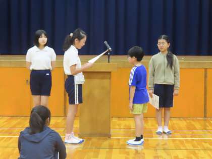 生徒指導の担当の先生からは、学習用タブレットの使い方の確認、校長先生からは、矢並小学校のグッドマナー賞が始まりますという連絡がありました。また、僕らの学び舎の撮影に向けて、リハーサルを行いました。タイトルコール、校歌斉唱も元気よくできました。当日の撮影が待ち遠しいですね。