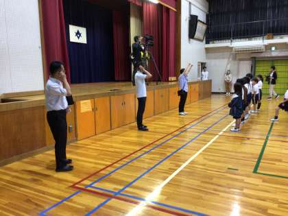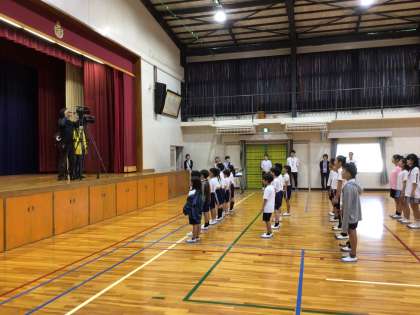 今日は、ひまわりネットワークの方が「僕らの学び舎」の撮影にみえました。朝、体育館で、元気よくタイトルコールをしてから校歌を歌いました。授業や休み時間の様子を放送されます。放送当日をお楽しみに。具体的な日にちは、分かり次第、またお知らせします。