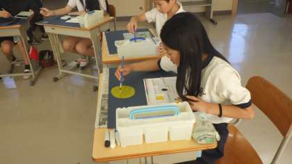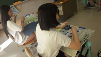 今日の6年生は、図画工作科で、グラデーションに気を付けて、色をつける学習に取り組んでいました。担任の先生が作成した素敵な見本をもとに、みんながんばって制作していました。