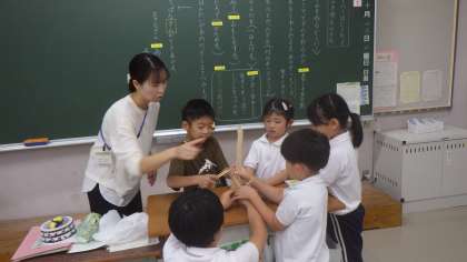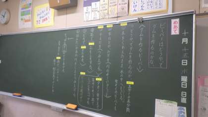 今日の2年生の国語科では、「ビーバーの巣作り」について学習をしました。教科担任の先生が、木やマグネットを使って、実際にビーバーが行っている作業を体験的に学ぶように工夫していました。おかげで、ビーバーがしていることが、よく分かりましたね。
