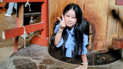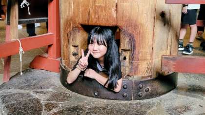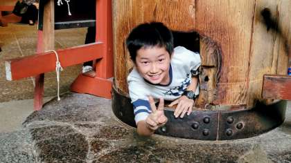 大仏の鼻の穴くぐりをしました。余裕で抜けられた子が多かったです。無病息災のご利益があるそうですよ。