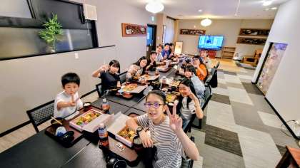 おはようございます。みんな元気に起きて、朝食を食べています。朝からご飯をお代わりして食べている子もいました。たくさん食べて、今日もたくさん学びましよう。