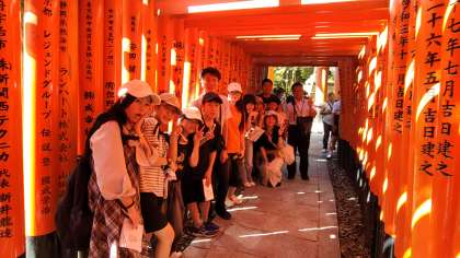 伏見稲荷に到着しました。子ともたちが楽しみにしていた千本鳥居を見て、またまた感嘆の声をあげていました。ここでも、ガイドを行い、クイズで確認する場もありました。
