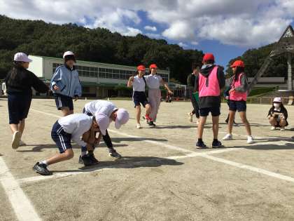 外は少し肌寒く感じましたが、子どもたちは元気に走っていました。今日は、全校種目の「二人三脚」を初めて行いましたが、なかなかうまくいかず苦戦していました。声を合わせて、気持ちを合わせて!休み時間に練習したいという声もあり、これからが楽しみです。