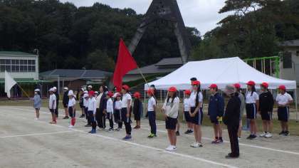 今日は、曇り空の中、運動会の開閉会式、地区種目の流れの確認を行いました。子どもたちの礼がそろってきて、とてもかっこよくなっています。もちろん、歌やかけ声も元気いっぱいです。