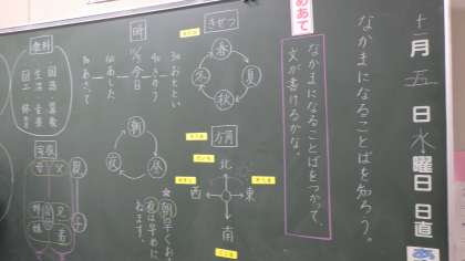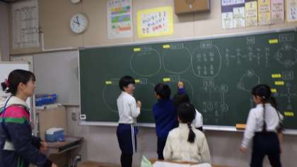 国語科で、「なかまになる言葉を使って文が書けるのかな」という学習を行いました。積極的に、黒板のところまで出ていって、自分の考えを記入していました。少人数ならではのよさを再認識しました。