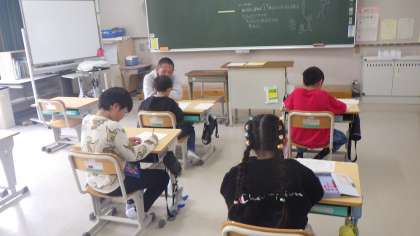 1年生は、「花」という漢字を練習していました。「先生!花見ってなんですか?」という子もいました。2年生は、矢並小学校区大運動会の絵日記を書いていました。玉入れの絵が上手でした。5年生は、ひかりこども園との交流会の計画をしていました。園児に楽しんでもらえるといいですね。