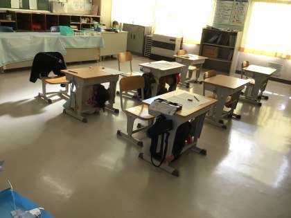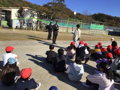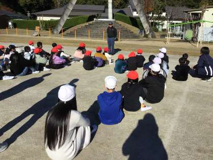 子どもたちに時間を伝えないで、避難訓練を行いました。放送が流れると、すぐに初期行動をとって身を守っていました。今回の訓練は、消防署の職員に避難の様子を見ていただき、とてもよくできていたと褒めていただきました。また、地震はいつ起きるか分からないため、寝ている時でも避難できるように懐中電灯や靴を寝ている場所の近くに置くことや、地震が起きた時の逃げ方や連絡の取り方を家族で話し合う大切さについて、お話をいただきました。どの子も真剣に話を聞いていました。