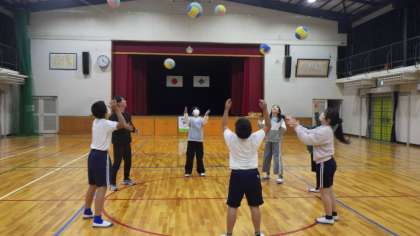 今日は、自分の夢を叶えた「夢先生」をお迎えして、夢の教室を行いました。まず、3時間目に、体育館で、夢先生と一緒にコーディネーショントレーニングを行いました。ボールが手から離れているときに動く、ボールを自分の身長の2倍以上上げて、左隣の人に渡すなど、楽しく活動することができました。