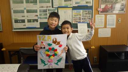 今日は、やまゆり学級が毎月作成しているカレンダーを校長室まで見せに来てくれました。今月も、担任の先生と一緒にていねいに作成することができましたね。