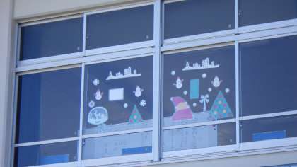最後の1枚は、図書館のガラスに貼っているクリスマス掲示です。クリスマスも近くなってきましたね。