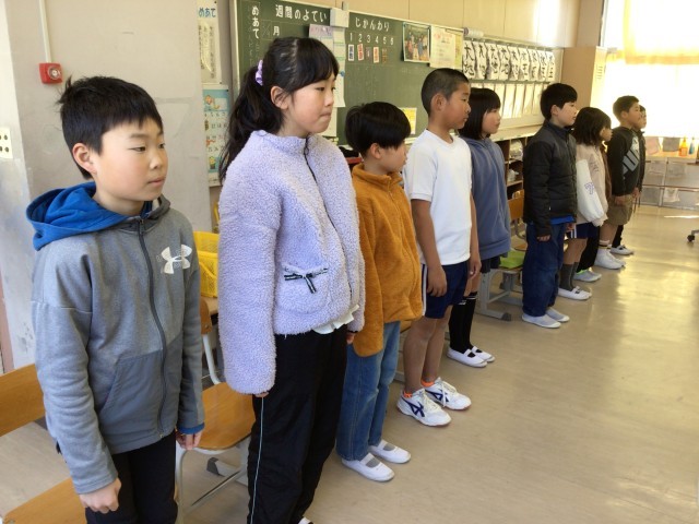 今日から体育館での卒業式に向けた在校生練習が始まりました。さくらタイムには、1〜4年生でことばの練習をしました。姿勢や立つタイミングなど、だんだんと揃ってきました。自分のセリフを覚えられたら、次は伝え方です。声の大きさ、話すスピードに気を付けて練習していきましょう。