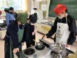 1月18日の5・6年生の家庭科の授業の様子です。今日は、調理実習で、みそ汁のだ...