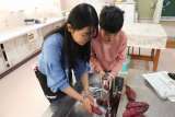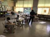 11月17日、1年生が算数の授業で、形づくりをしていました。三角形の色板を使い...