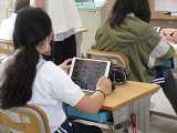 タブレットを使って授業を行っています(1年)