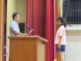 今日は、夏休み前の全校集会がありました。最初に、標語の表彰を受けた5年生の児童...