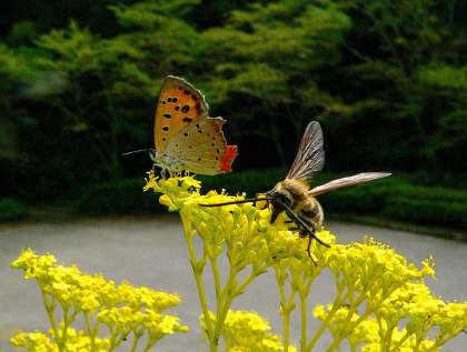 松平園地は四季を通して豊かな自然に出会うことができるところです。暦で「処暑」にあたる8月23日に1時間ほど散策して撮影できた自然の姿は多様です。オミナエシは開花真っ最中で多くの昆虫が蜜を吸っていました。湿地では、歩く足元でトノサマガエルとツチガエルが幾匹も飛び跳ね、トンボの産卵する姿が各所で見られました。