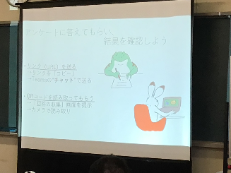 Formsのアンケートを作成した後は、二次元コードで読み取り、隣の先生の問題を解くことで交流を深めていました。