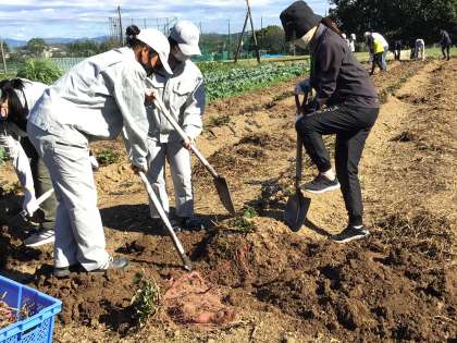 今日は天気にも恵まれ、絶好の実習日和になりました。中学校の初任者は猿投農林高校で、農業教育について学びました。農業科総合実習では、果樹の栽培実習、野菜の栽培実習、畜産の飼育実習、草花の栽培実習の4グループに分かれて、生徒たちと一緒に学習しました。高等学校教育(職業に関する学科)への理解を深めるよい機会になりました。
