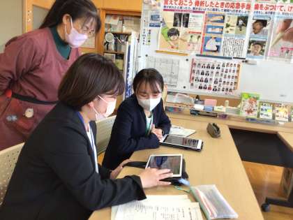 今回は浄水小学校をお借りしての研修でした。研修1では、主任養護教諭の草川先生に案内していただき、保健室と校内の観察を行いました。教員や子供たちみんなが使いやすいか、学校保健活動のセンター的役割を果たしているか、学校にいる人が気持ちよく安全に過ごせるかという視点で観察すると、自分の学校との違いがたくさん見つかりました。各学校の様子(写真)を持ち寄って紹介しあう中では、自分の学校に生かしたい学びの共有もできました。研修2では、冷田小学校の鈴木京子校長先生をお迎えして、保健室経営の課題について話し合いました。4月からの経営を振り返る、大変良い機会になりました。