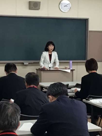 また、「拠点校指導教員としての活動内容と実践例」と題し、土橋小学校の池田美枝子先生に具体的な指導についてのお話を聞きました。