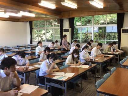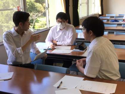 「意図のある導入とは」「子どもの思いを引き出すには」など、様々なテーマに対して自分の考えをまとめ、グループでシェアする活動を行いました。「そんな事まで考えて授業をしているんですね。」と教員の取組に感心する大学生の言葉が印象的でした。