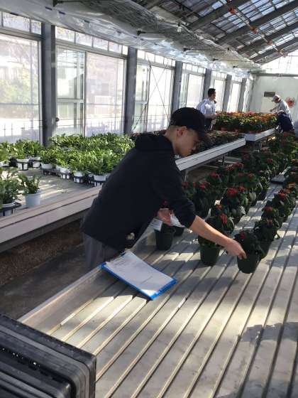猿投農林高等学校での農業実習では、野菜・果樹・草花・畜産の4グループに分かれて高校生と共に作業をしました。農業高校がどのような授業を行っているか、また、進路についても知ることができました。今後の進路指導に役立ててほしいです。