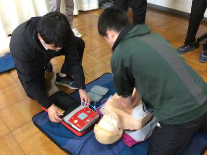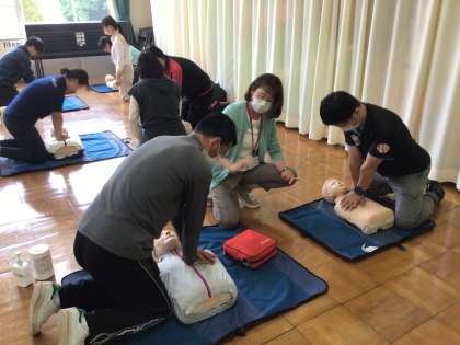 中消防署より救急救命士を講師に招き、救命講習を行いました。のどに物が詰まった時の対処方法や適切な止血の仕方、最新の救急通報等について学びました。