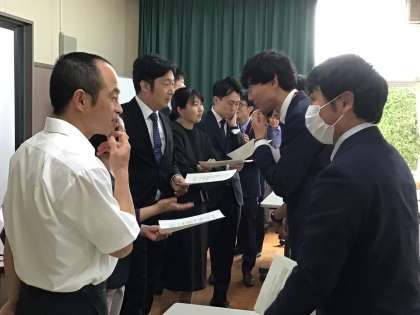 4月25日に教育センター研究員研修全体会を実施しました。教育センターから委嘱状を交付され、研究の進め方、中堅教員としての力量向上のヒントを学びました。今年度は、9人の研究員が1年間研究を進め、2月には、センター研究員発表会でその成果を報告します。現在は実践計画をもとに、各学校で自身の研究に取り組んでいます。研究を通じて教育活動を充実させ、それぞれの教科領域での専門性を高めていきます。