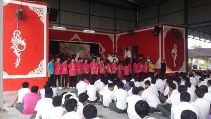 写真はマレーシアでの全校集会の様子です。