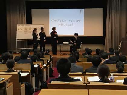 1月21日に第14回初任者研修校外研修が行われました。教職員会館で行う研修は3カ月ぶりになります。研修1では、あいちCAPプラス様を講師に招き、「子どもの権利と虐待対応」について、お話をお聞きしました。講義の途中では、子どもワークショップの体験も行い、子どもの権利について知り、先生としてどのような声かけの仕方をすると良いのかを学びました。