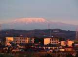 寺部小学校と恵那山(豊田大橋より)