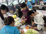 焼きそば作りが始まりました。グループで協力して、楽しみながら作っています。