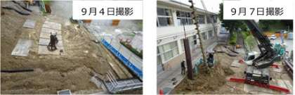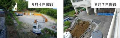 調理場の改築工事が始まりました! 公開日 2021/06/04 更新日 2021/06/04 調理場の改築工事の進捗状況 8月は、掲揚台や通路などの解体、9月からは新しい調理場の工事が本格的に始まりました。新調理場の完成は令和3年の6月頃、新しいランチルームの完成は令和4年の2月頃の予定です。安全第一で工事を進めていますが、校内を工事車両等が通ります。十分に気を付けてくださいね。 今後、定期的に工事の様子をホームページに掲載していきたいと思います。