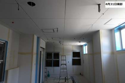 調理場の改築工事について(4月) 公開日 2021/06/04 更新日 2021/06/04 調理場の改築工事の進捗状況 新調理場の内部と外構工事は、順調に進んでいます。 新調理場の完成は令和3年の6月頃、新しいランチルームの完成は令和4年の2月頃の予定です。安全第一で工事を進めていますが、校内を工事車両等が通ります。十分に気を付けてくださいね。 今後、定期的に工事の様子をホームページに掲載していきたいと思います。