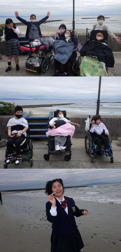 「いってきます!」と元気に挨拶をして、観光バスで学校を出発しました。目的地は内海海水浴場の近くにある「サポートイン南知多」です。バスの中では、バスガイドさんのクイズや車窓から見える景色を楽しみました。