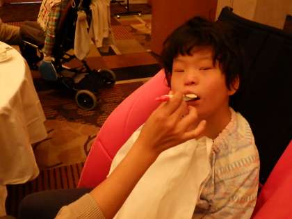 ホテルでは、フルコースの食事とクラウンショーを楽しみました。食事はどれも美味しく、盛りつけもとても美しかったです。コースの最後は、甘いデザートもいただいて、おなかいっぱいになりました。