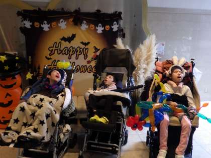 3枚目 ホテルロビーのハロウィンのディスプレイの前で