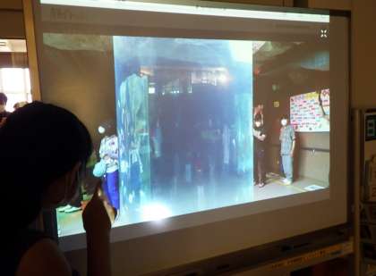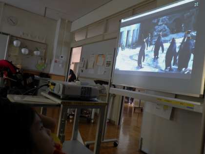 リポーターの方が各地をリアルタイムで案内してくださいます。今回のロケ地は北海道にある「旭山動物園」。生徒たちは、画面いっぱいに広がるキリンやペンギン、ホッキョクグマなどを見て、目を大きくして驚いたり、笑顔で動物を指差ししたりして楽しみました。また、気になることはチャット機能を使ってその場でリポーターに質問することができ、生徒たちは探究心をもちながら動物についての知識をさらに深めることができました。